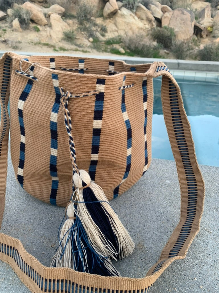 This bag is handmade from start to finish so there can be small size variances. The artisans weave the bases using their own designs, so each base is unique and works as their personal trademark.